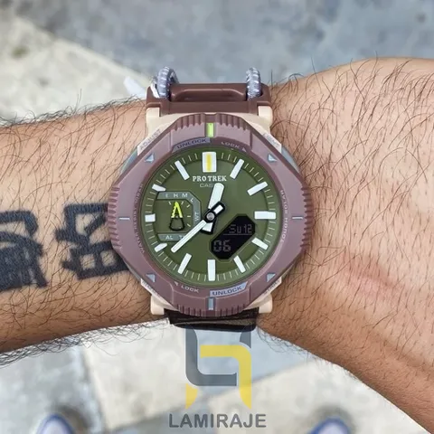 ساعت مچی کاسیو پروترک PRJ-B001B-2 مردانه زنانه با بند برزنتی رنگ قهوه ای